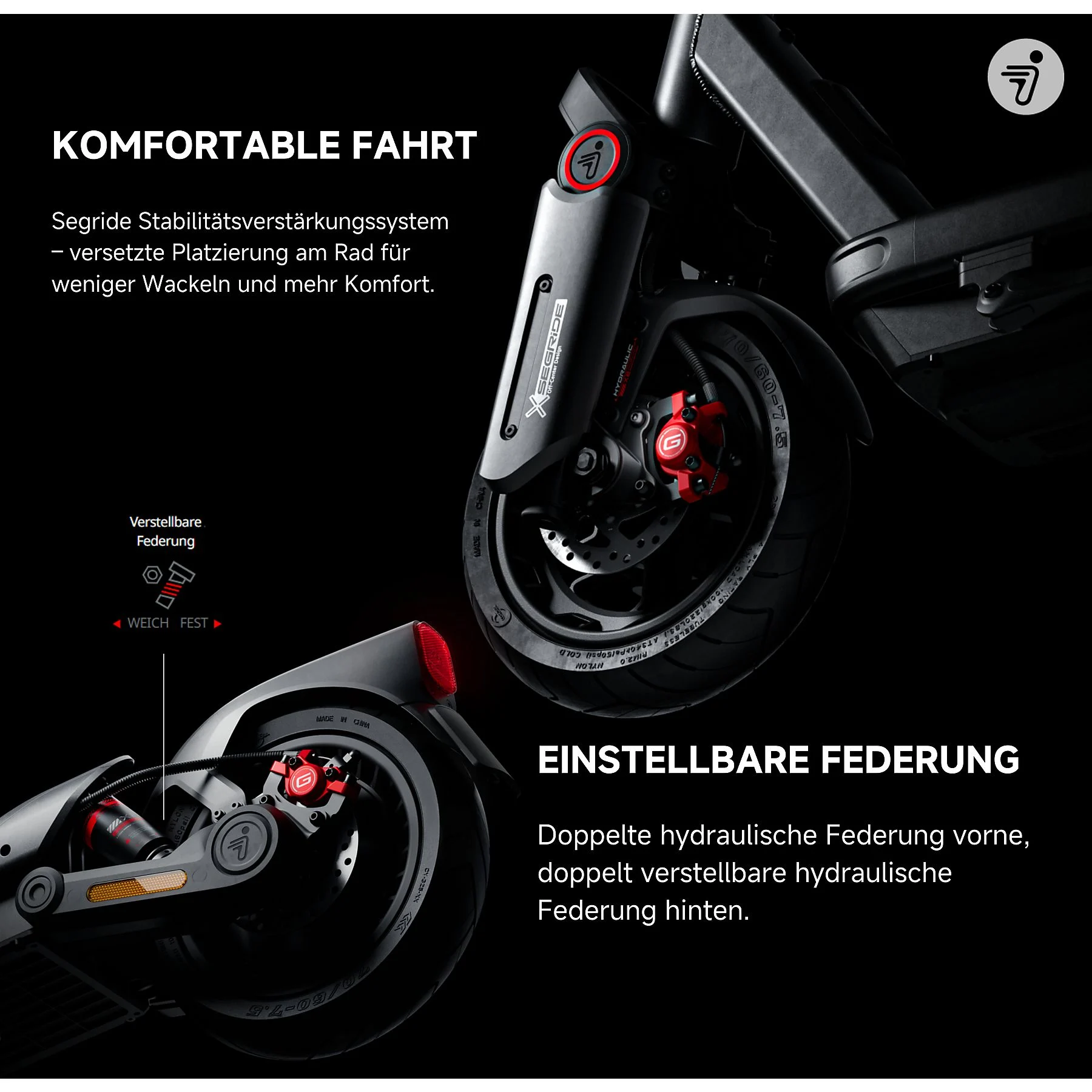 Das innovative SegRide™ Stabilitätssystem unterstützt maximale Kontrolle, Stabilität und Sicherheit – auch bei höheren Geschwindigkeiten.